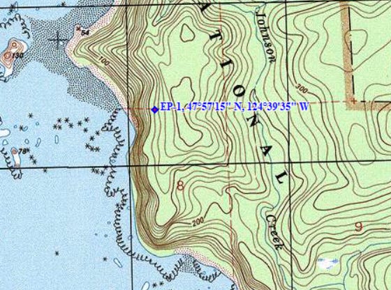 Lat 47º57’15” N, Lon 124º39’35” W